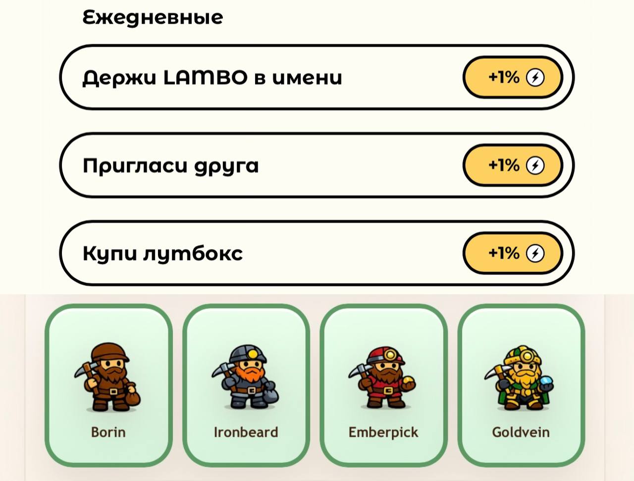 Переходим по ссылке и забираем бесплатное серебро. Дальше выполняем обычные задания, получаем еще серебро и покупаем первых гномов. Добыча начинается.