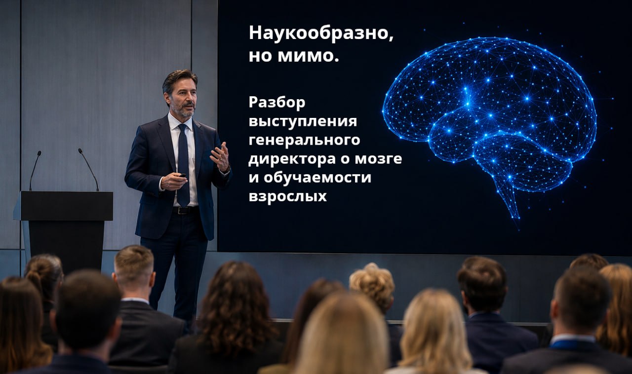 Ради интереса посмотрел видео. И в который раз убедился, как некоторые люди, не погрузившись в тему, начинают делать довольно серьезные выводы о том, как устроен человеческий мозг, и пытаются на этом строить свою экспертность о том, как учить взрослых.