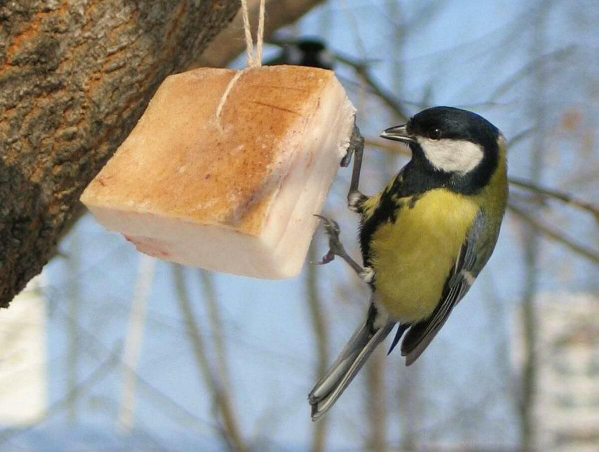 Зимой птицы тратят много энергии на поддержание температуры тела, и сало для них не лакомство, а источник быстро усваиваемых калорий.