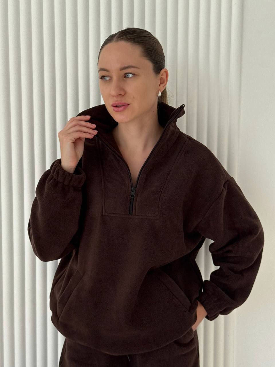 Ціна 590 грн юл Спортивний костюм 💎 ▪Модель 1557 ▪Тканина: фліс полар ▪Кольор: шоколад 54-58 1 шт 54-58 Кофта Обхват грудей -160 Довжина виробу -72 Довжина рукава-62 Обхват стегон-110 Штани Обхват талії-88 тягнеться Обхват стегон-130 Довжина виробу-113 Для замовлення пишіть 👉🏻 @YourlookOlga❤