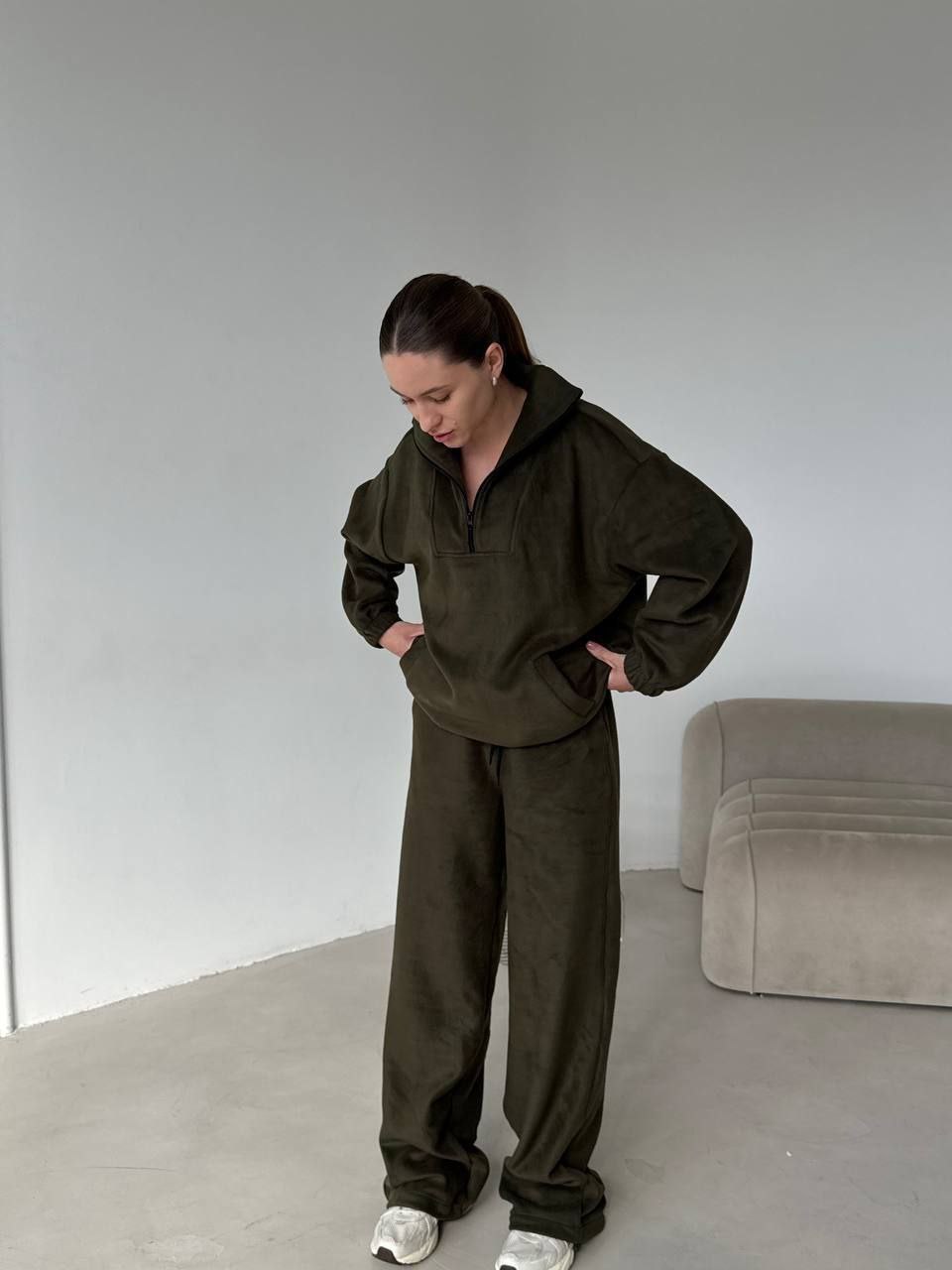 Костюм 590 грн Модель 1563 ▪Тканина: трехнить туреччина , манжети рібана ▪Кольор: графіт , чорний , шоколад ▪Розмір: 42-46 ‼️ На дівчині 42-46 Для замовлення пишіть 👉🏻 @YourlookOlga❤