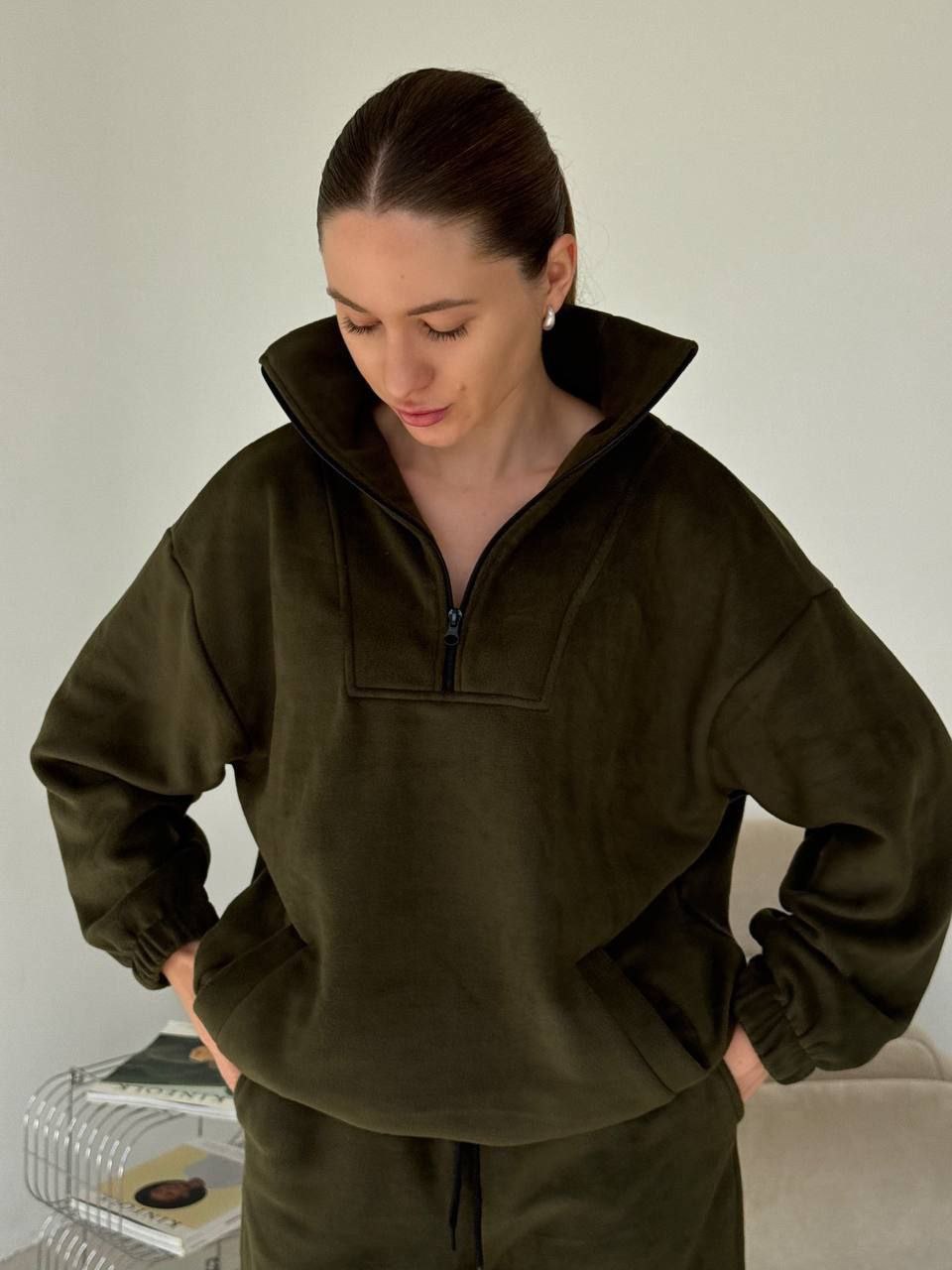Ціна 590 грн юл Спортивний костюм 💎 ▪Модель 1557 ▪Тканина: фліс полар Сірий 42-46 1 шт Шоколад 42-46 1 шт Хакі 48-52 1 шт Заміри на модель 1557 42-46 Кофта Обхват грудей -124 Довжина виробу -65 Довжина рукава-51 Обхват стегон-90 Штати Обхват талії-66 Обхват стегон-110 Довжина виробу-111 48-52 Кофта Обхват грудей -140 Довжина виробу -68 Довжина рукава-51 Обхват стегон-100 Штани Обхват талії-72 Обхват стегон-120 Довжина виробу-112 Для замовлення пишіть 👉🏻 @YourlookOlga❤