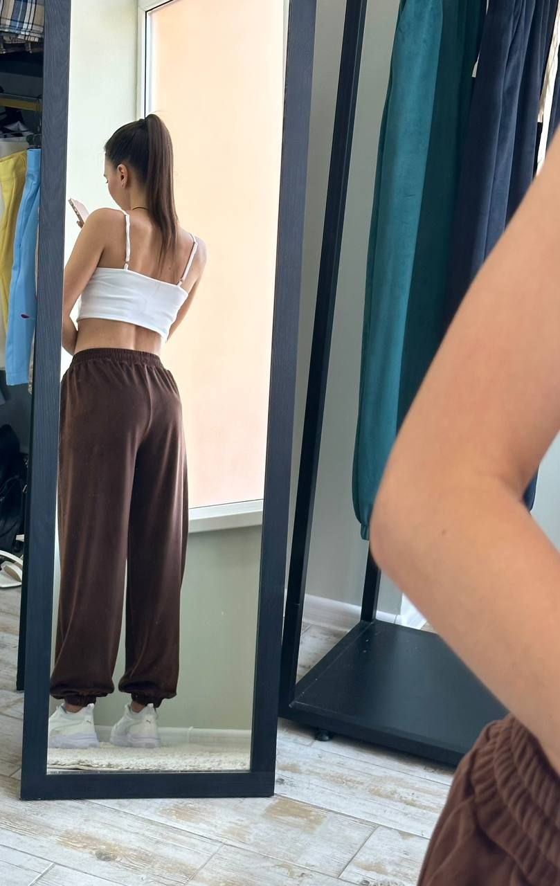 Базові штани палаццо велюр 400 грн ❤️ ▪Модель : 1550 ▪Тканина: велюр спорт ▪Кольор: шоколад ▪Розмір: 42-44 Модель 1550 42-44 Обхват талії-64 Обхват стегон-120 Довжина виробу-114 Для замовлення пишіть 👉🏻 @YourlookOlga❤