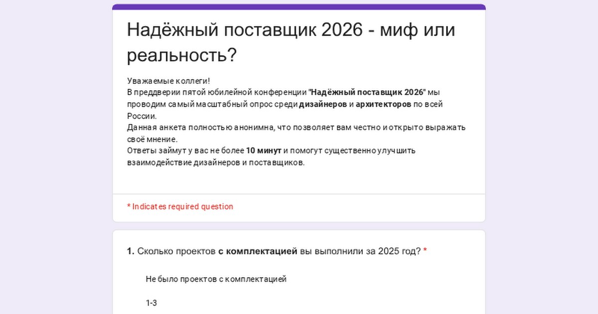 ✨ Опрос предназначен ТОЛЬКО для дизайнеров, архитекторов, архитектурных бюро и студий дизайна. Поставщики, комплектаторы, подрядчики - просьба привлечь к опросу именно эту ЦА. Это важно!