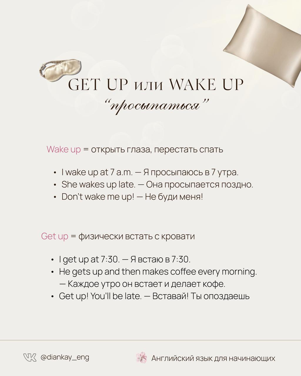 Разница между 'get up/wake up', 'do/make'