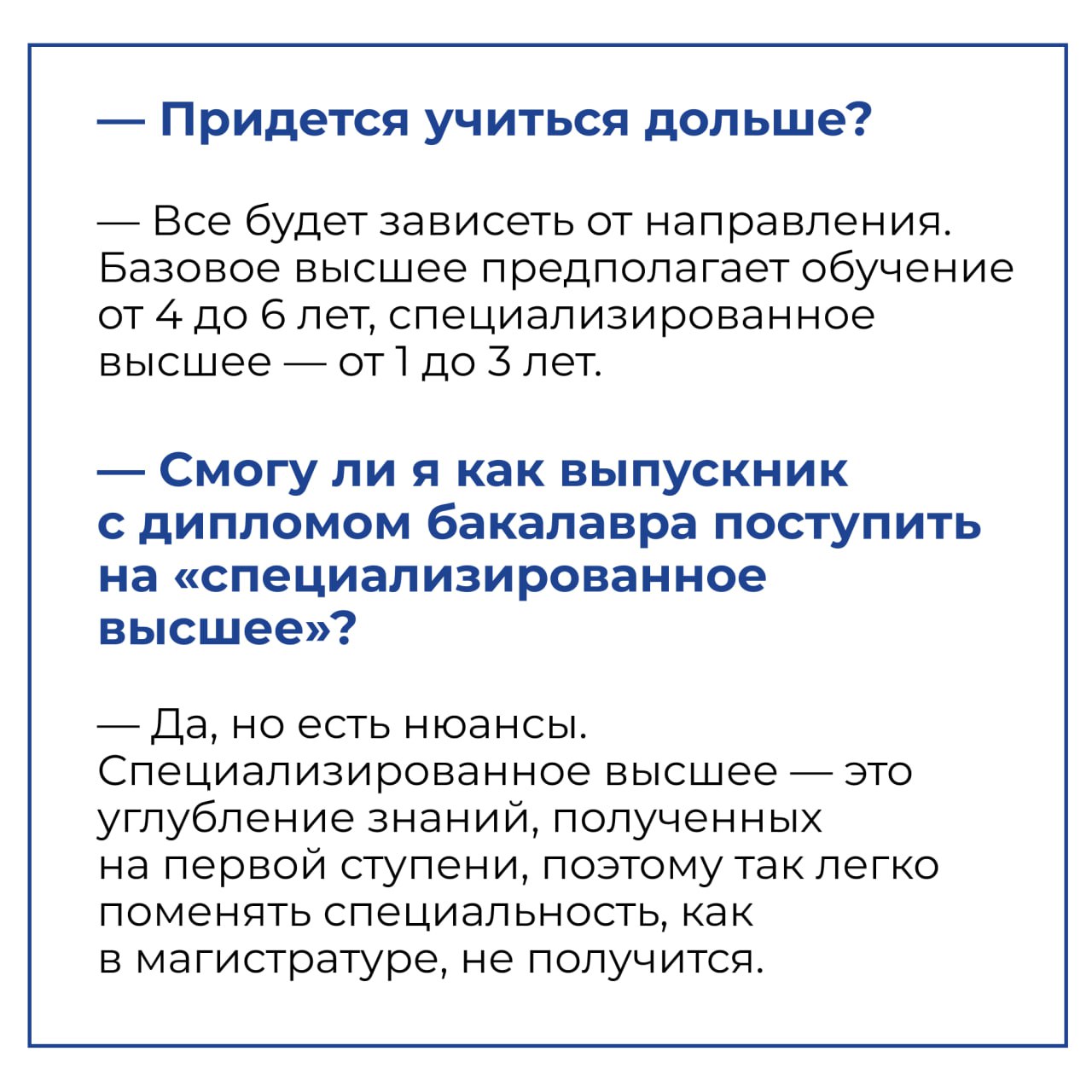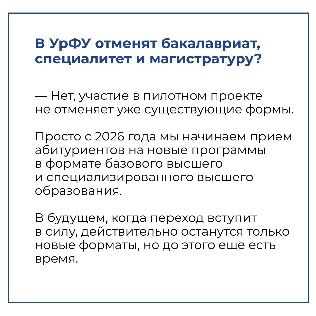 Согласно документу, уже этим летом университет будет вести набор первокурсников не только на программы бакалавриата, специалитета и магистратуры, но и по-новому — базового высшего и специализированного высшего образования.