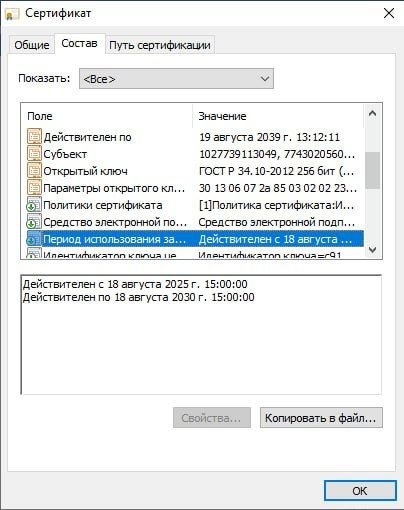 🔹ГОСТовый "Минцифры России НУЦ корневой" от 2025 г. - 15 лет.
