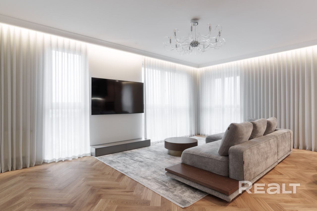 - 93 квадрата, за 275 тысяч долларов. С мебелью, указано, что вид – красивейший, но окна на фото зашторены.
