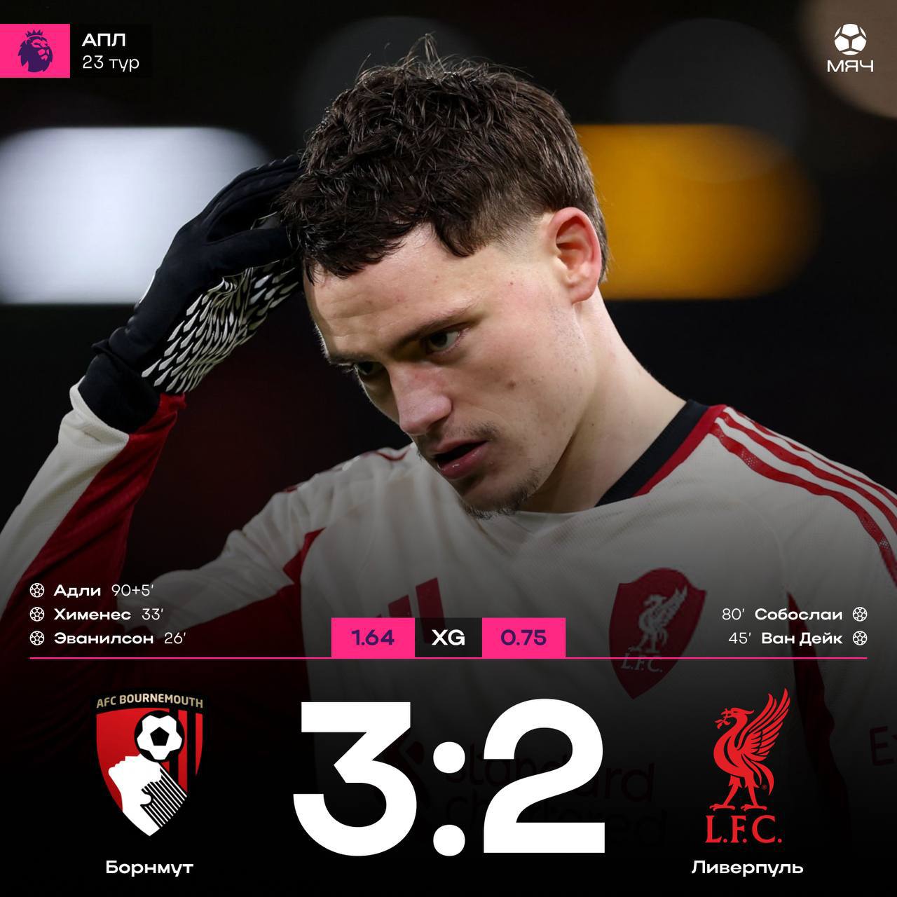 ⚡️Ливерпуль уступает на последних минутах 🏴󠁧󠁢󠁥󠁮󠁧󠁿Борнмут 3:2 Ливерпуль 🏴󠁧󠁢󠁥󠁮󠁧󠁿