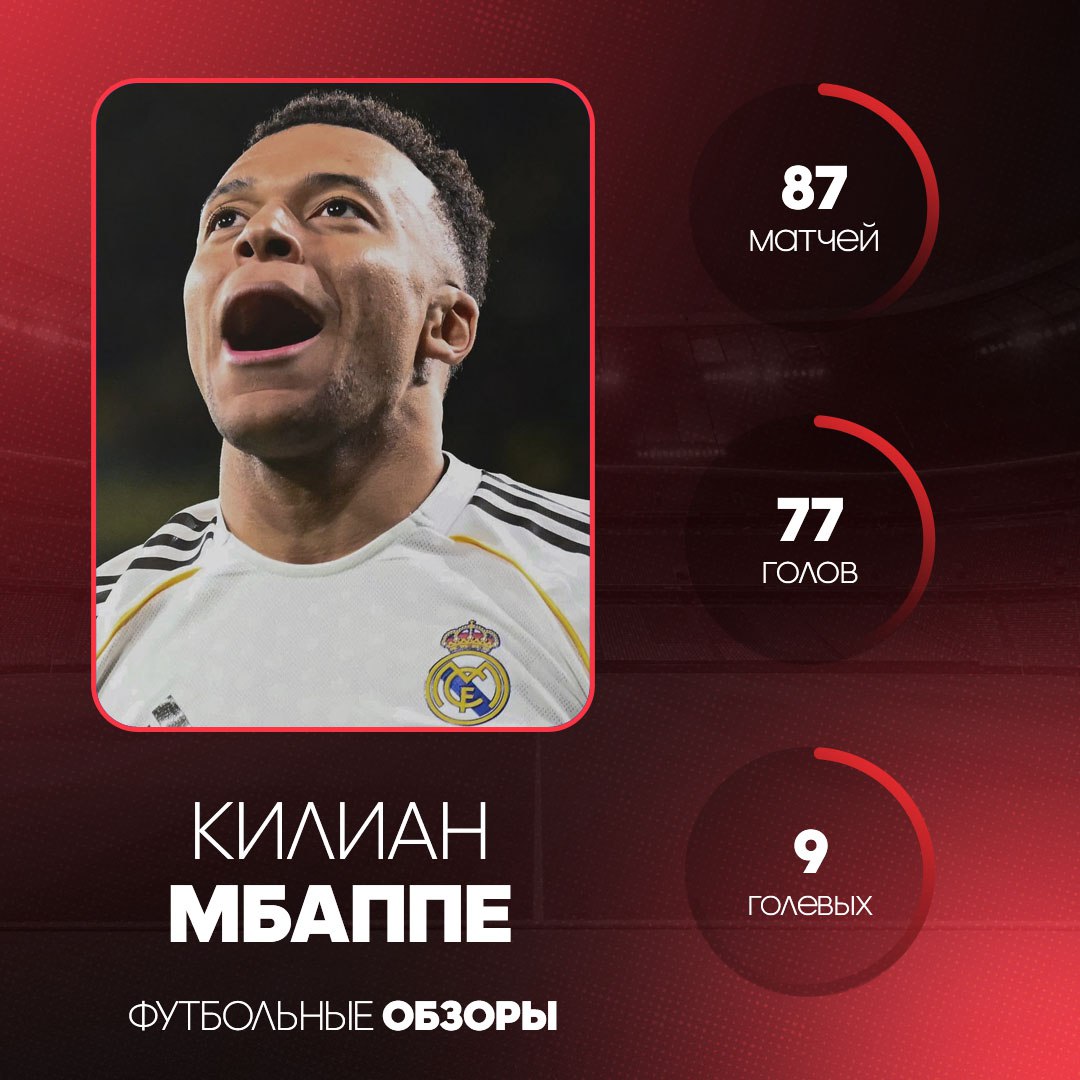 🇪🇸🐢 Статистика Килиана Мбаппе за Реал 🏟 87 матчей ⚽️ 77 голов 🅰️ 9 ассистов ⚽️ EuroFoot