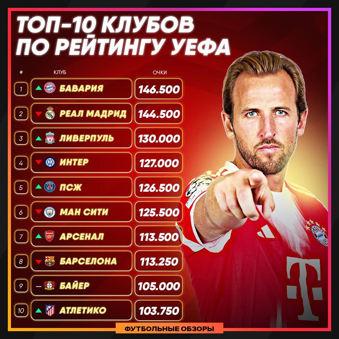 🔝 Вчера она обошла «Реал» и вышла на первую строчку общем рейтинге УЕФА