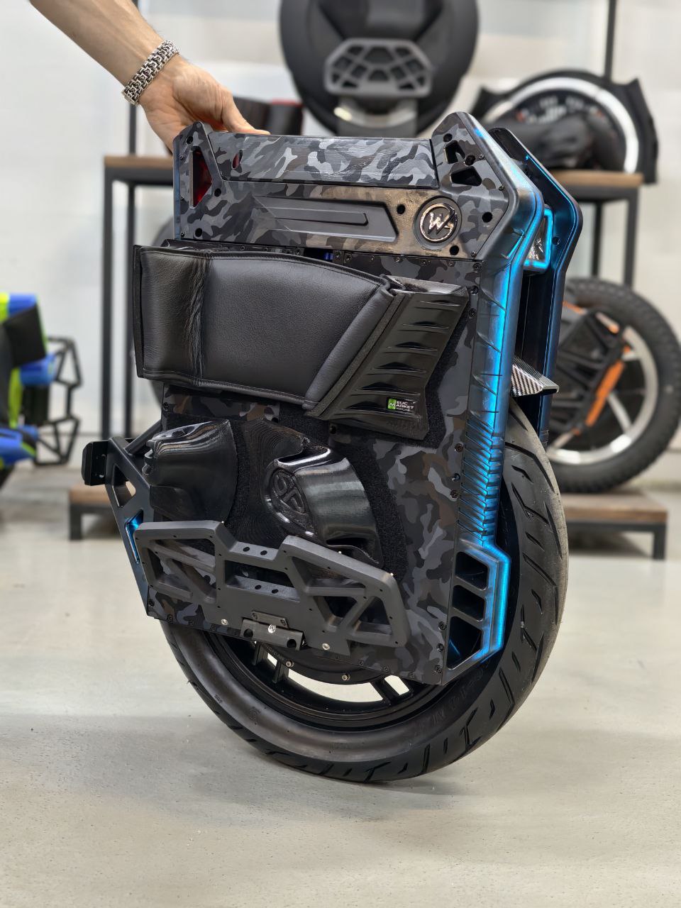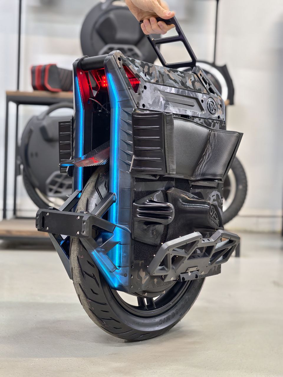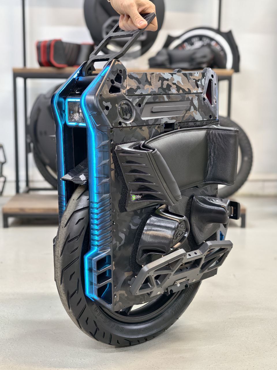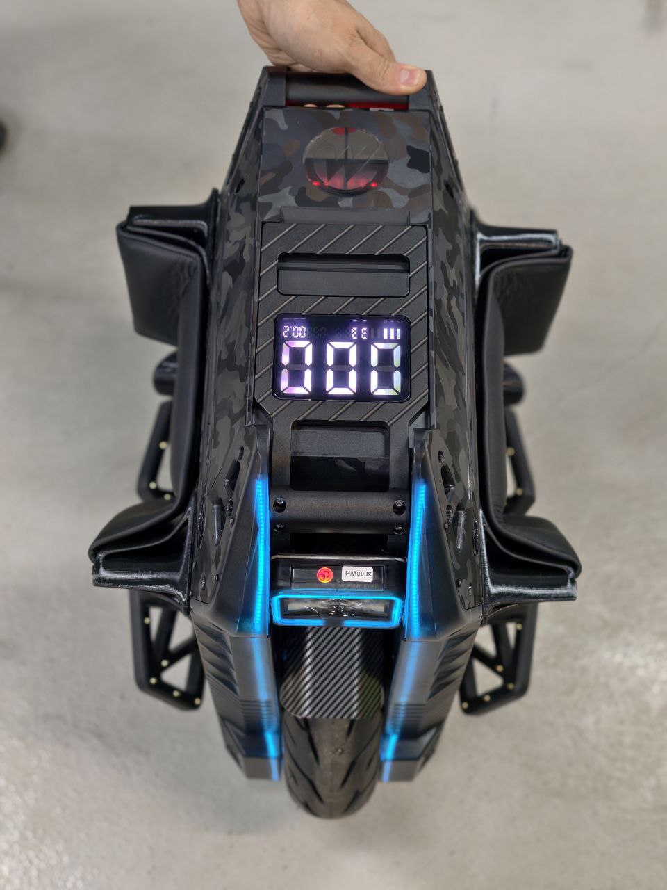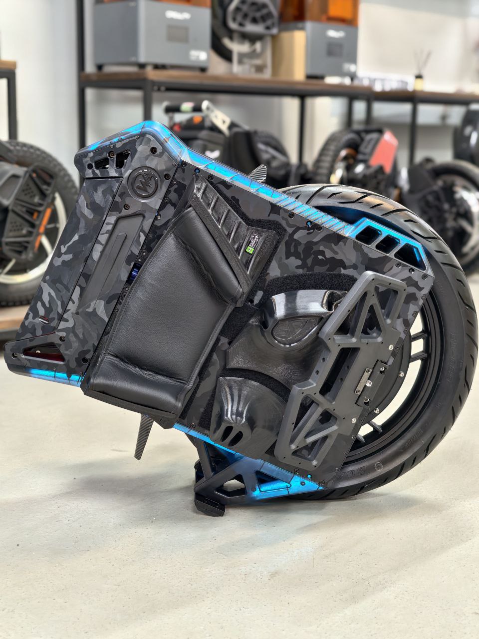 Форма сиденья повторяет изгибы верхней крышки корпуса моноколеса, сохраняется доступ к использованию заводской ручке и экрану. Основание сиденья сделано на 3D принтере. Наполнение сделано из вторичного автомобильного поролона для придания нужной высоты и достижения оптимального комфорта сидушки