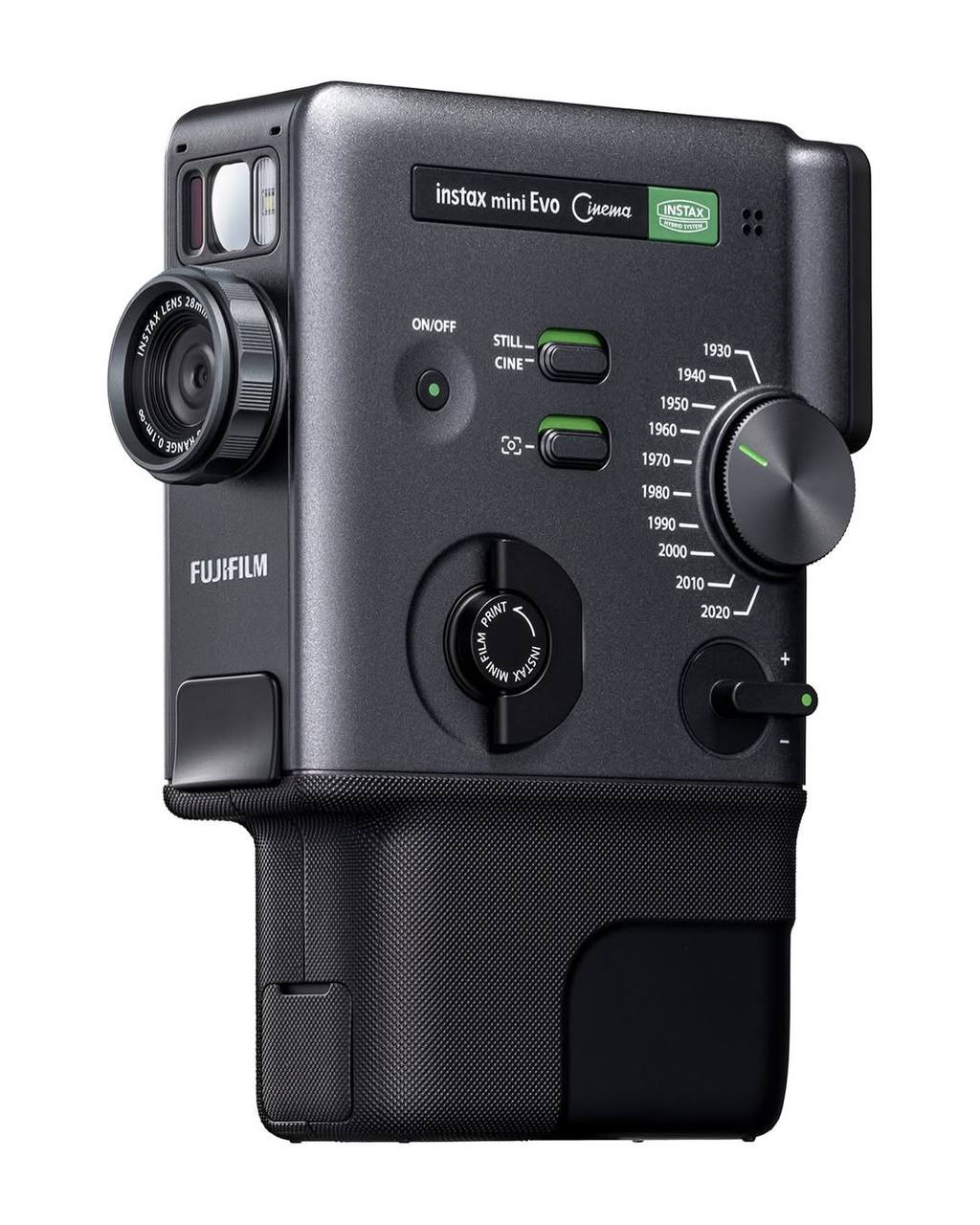 Компания представила новую камеру Instax mini Evo Cinema. Эта модель выглядит как винтажная кинокамера и была вдохновлена культовым Single-8 образца 1965 года, появившимся в эпоху домашнего кино.