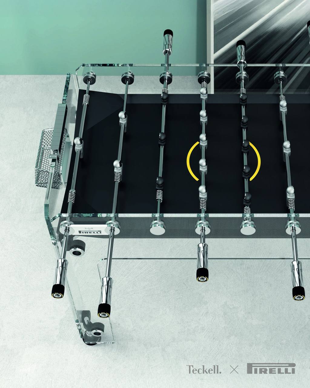 Производитель дизайнерского декора Teckell и старейший производитель шин Pirelli создали настольную игру из закаленного стекла с желтой гоночной графикой.