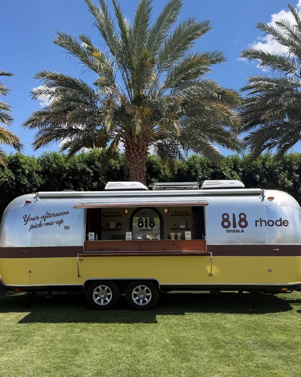 Первая активация — в партнерстве с брендом Кендалл Дженнер 818 Tequila. Фургон с коктейлями работает для инфлюенсеров и гостей фестиваля. Гениальная задумка — подставка под стакан, бутылочку и бальзам для губ!😅