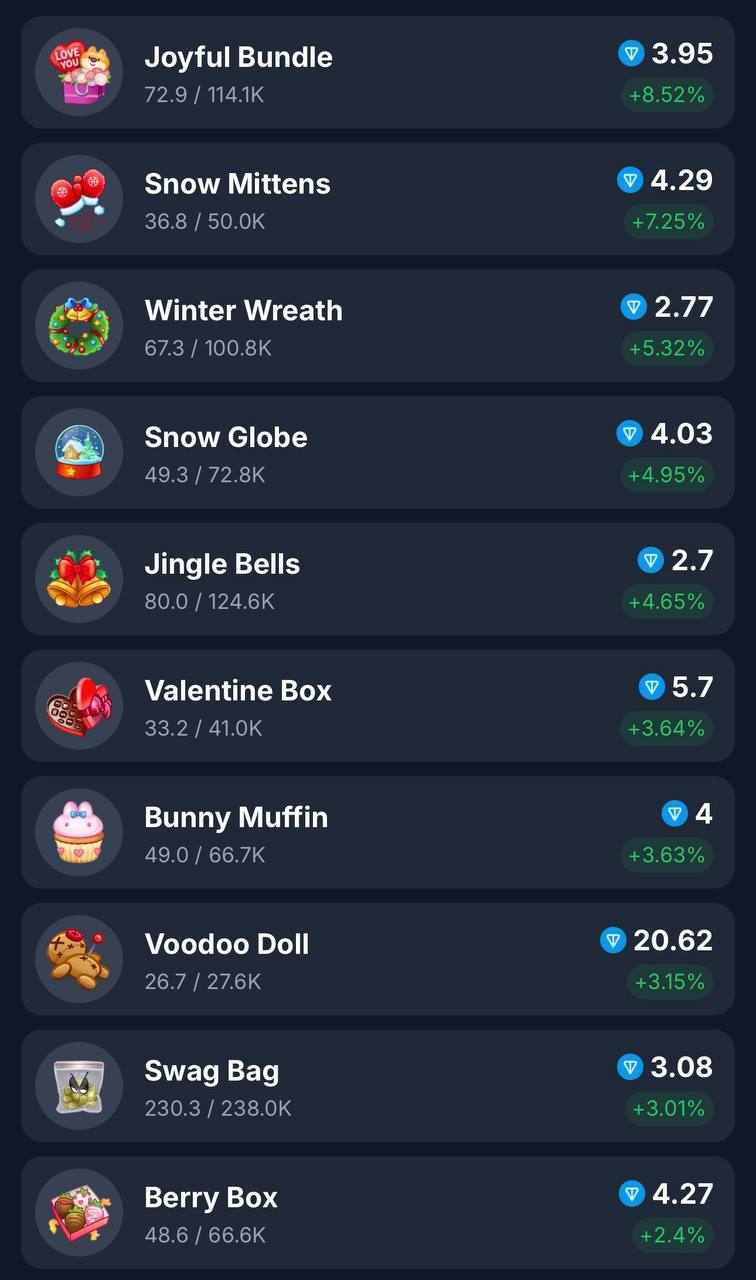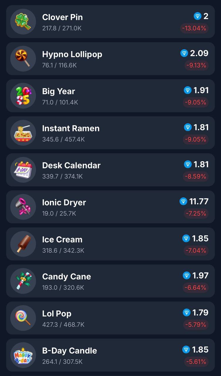 ТОП-10 подарков по росту и падению прямо сейчас 🎁