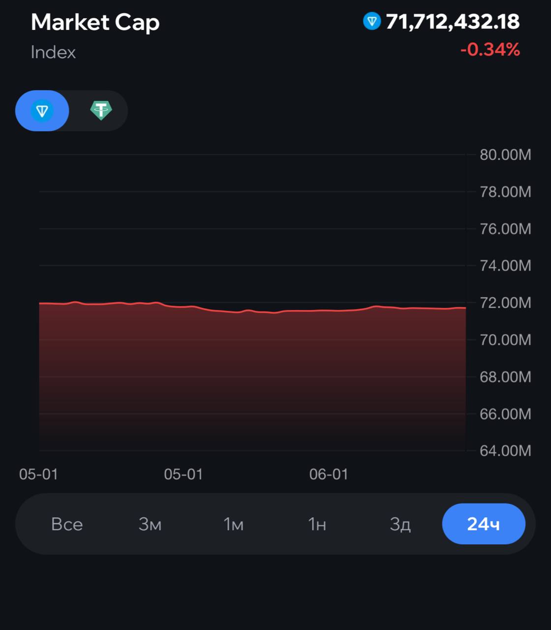 Показывая юсдт и, когда вы берете какие-то промежутки временные для оценки динамики, вы забываете одну очень важную вещь - изменение курса $TON.