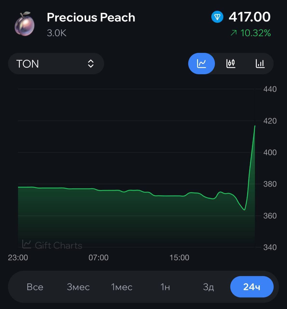 Подарки с другим суплаем, от 5 до 10 тысяч, например - это средняя цена в 300 $TON. Опять же, если ориентироваться на ТОП-3, беря во внимание соотношение цены к общему количеству.