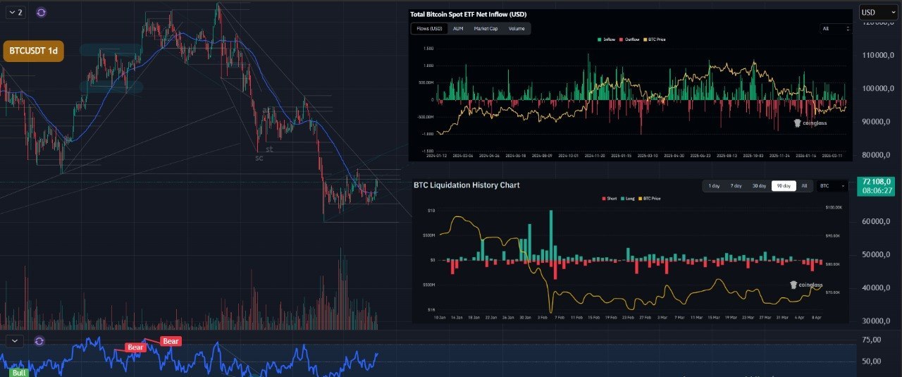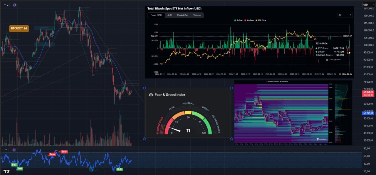 🙄 Вообще есть один интересный момент, а именно то, что ситуация на Ближнем Востоке начинает заходить в опасную зону. Трамп поставил ультиматум Ирану и грозится полностью, за ночь уничтожить страну, что подводит данный конфликт к чрезвычайно острой фазе. Рынки, пока что, на данное заявление никак особо не отреагировали. Но вчера, согласно метрике притоков-оттоков в спотовые биткоин-etf, мы увидели впервые за долгое время всплеск. Приток составил +$471.4 млн.