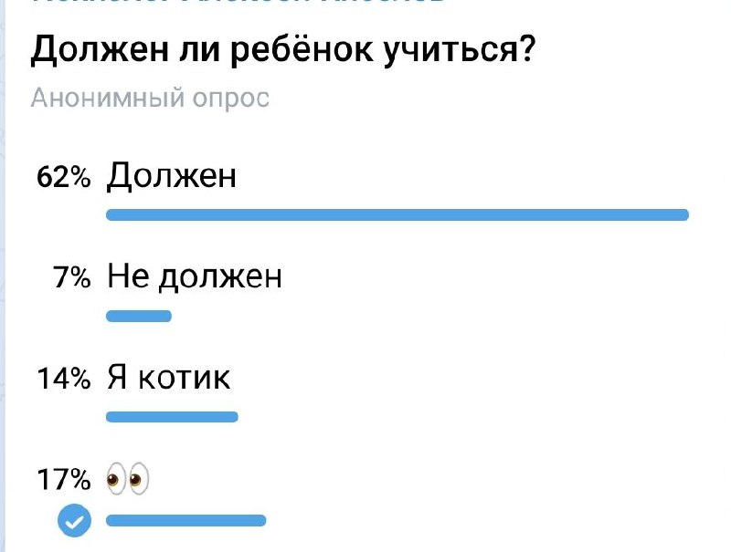 Интересно, сколько тех, кто ответил "ребёнок должен учиться" и при этом "взрослый не должен работать" 😎😜