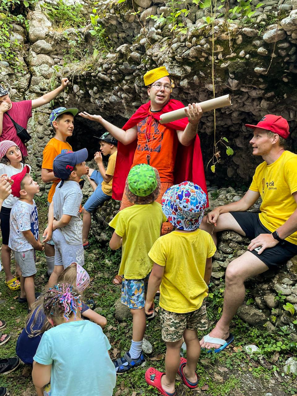 ⭐ Дети с горящими глазами исследуют мир вместе с мудрыми наставниками (не академический подход, а творческий). Всё через игру, эксперимент и диалог. А ещё и на природе, в такой дружеской атмосфере семейного лагеря!