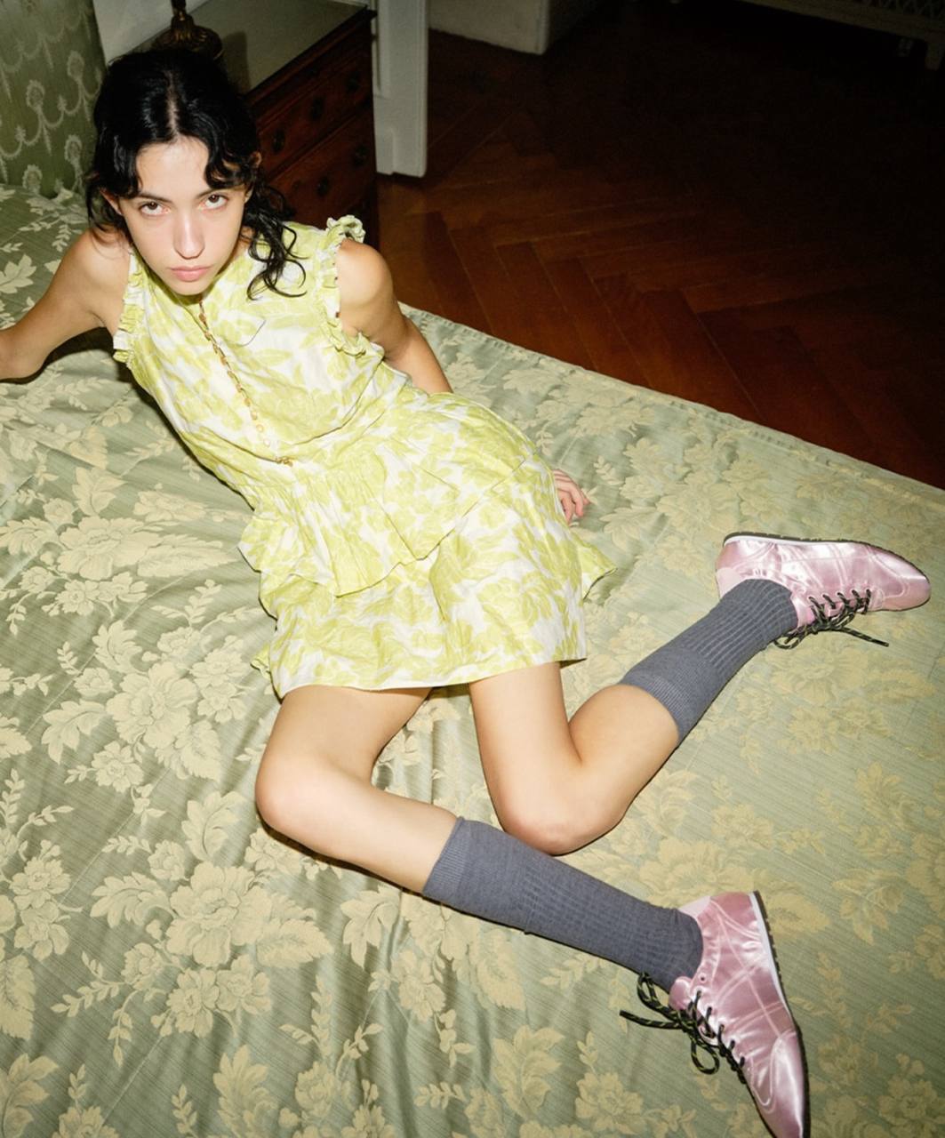 Для себя отметила атласные розовые сникерсы как на заглавном снимке нового кампейна, которые прекрасно будут сочетаться со всеми цветными нейлоновыми юбками и куртками как у Prada.