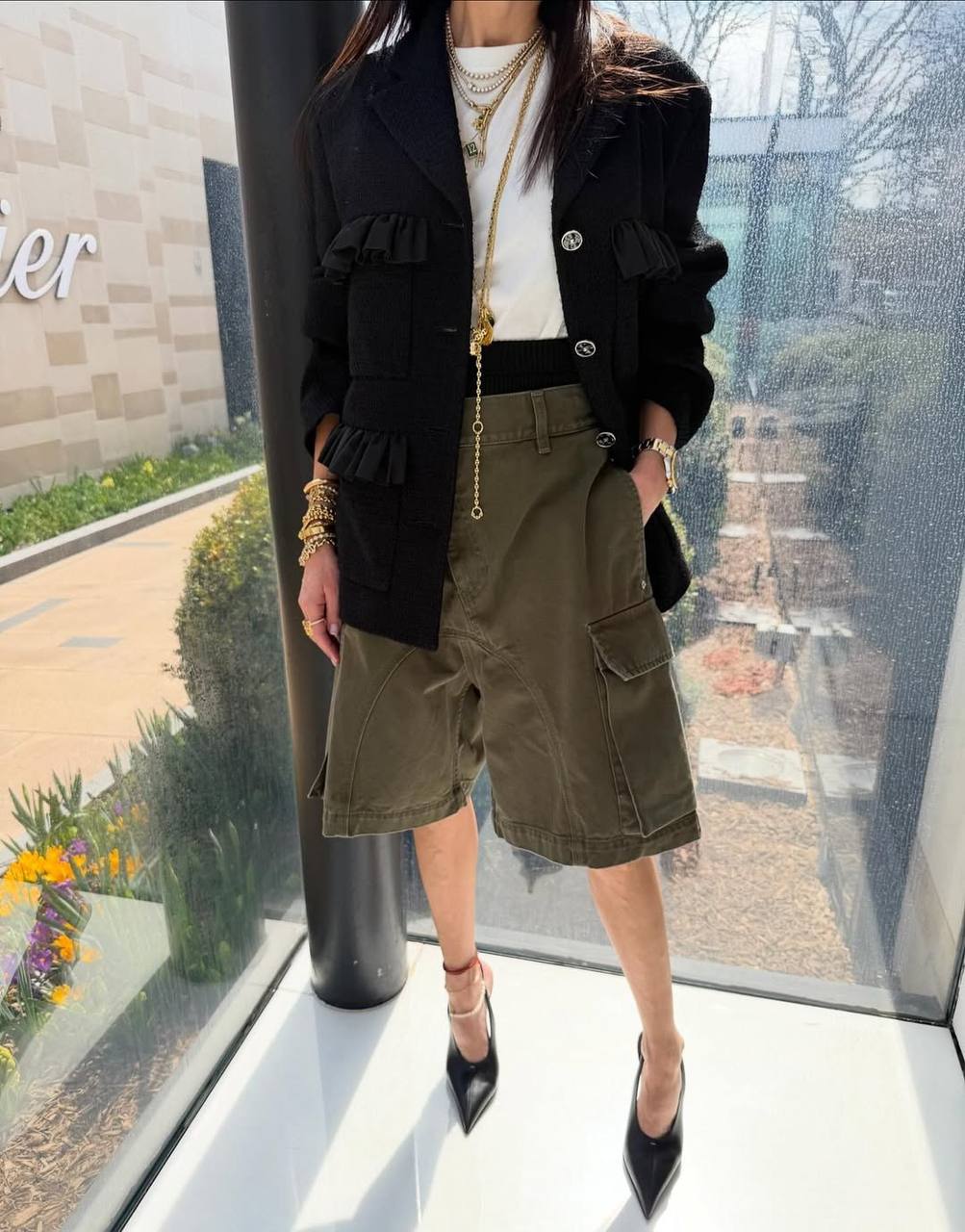 И если приобрести Dior возможности нет, то можно поиграть в этот тренд с очень широкими карго, которые нужно носить с приталенным bar-jacket и бантом на шее. Хотя просто с высокими каблуками они тоже хорошо смотрятся.
