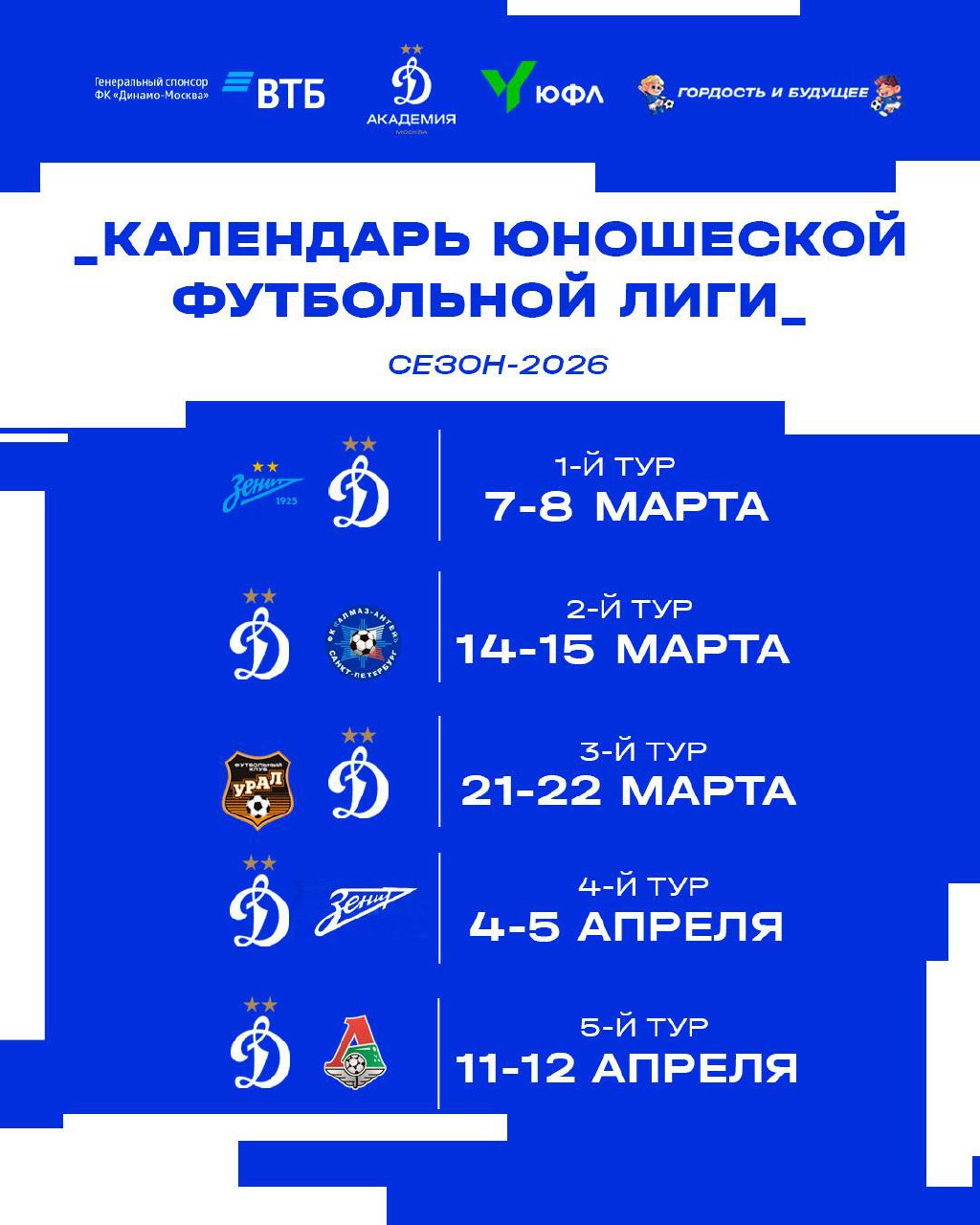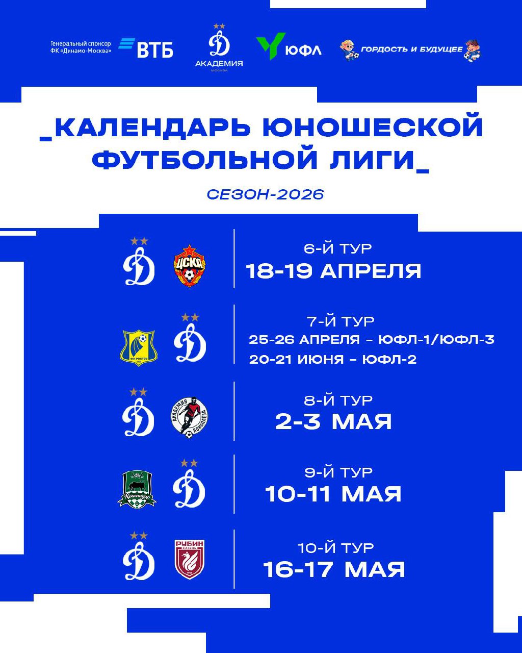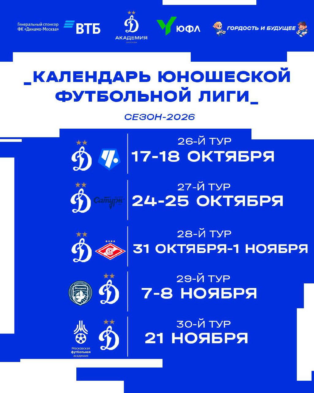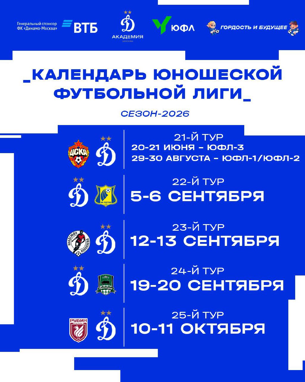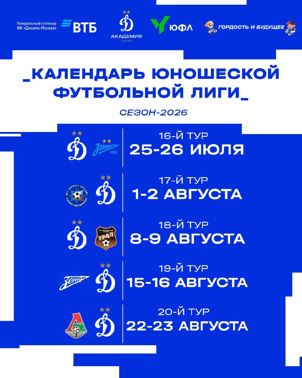 Календарь Юношеской Футбольной Лиги для вас тоже подготовили ⚽️