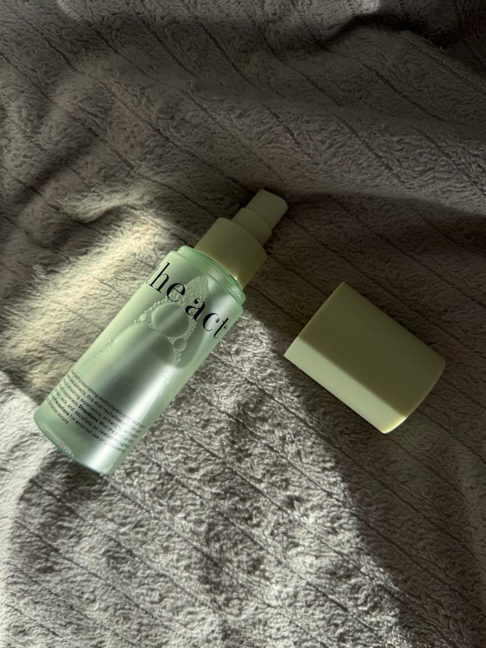 Сегодня передаем привет +16 градусам в Москве, работающим батареям и квартире на солнечной стороне. Настя собрала комбо — освежать кожу при таких вводных хочется каждые пару часов. Поэтому встречайте спрей-мист The Act Multi-Vitamin, героя рубрики #провереноflacon.