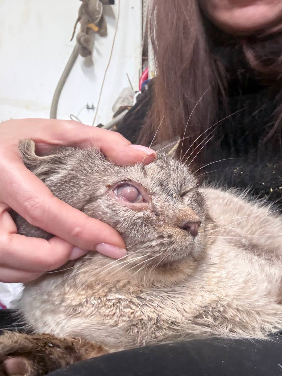 Первого красавца мы назвали Адамант - как драгоценный камень. Он приехал к нам из Чапаевска, долго скитался, пережил морозы, а теперь борется с тяжелейшим поражением глаза от вируса герпеса. Сейчас ему нужна мощная терапия: обезболивающие, противовоспалительные и антибиотики - препараты дорогие, но жизненно необходимые. Готовим его к операции по удалению уже мёртвого органа.
