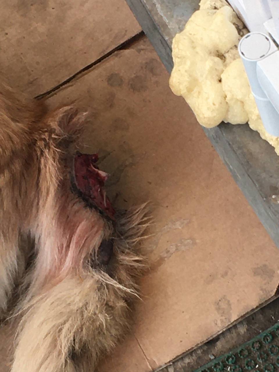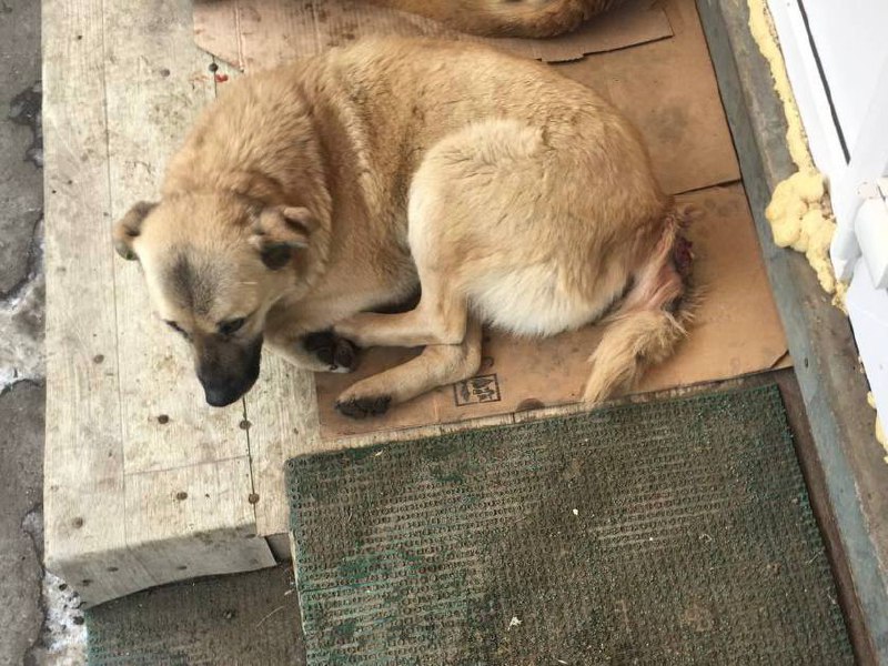 Третья пациентка - Белочка. Знакомая многим собачка с Юнкородка, о которой заботится сотрудники рынка. Некоторое время назад она получила травму хвоста. Результат: открытый перелом и инфицированная рана. Это доставляло ей боль и жуткий дискомфорт, так что она пыталась избавиться от хвоста самостоятельно, только усугубив ситуацию. Ей, как и Адаманту, предстоит подготовка к хирургии, ампутация, и послеоперационная терапия.