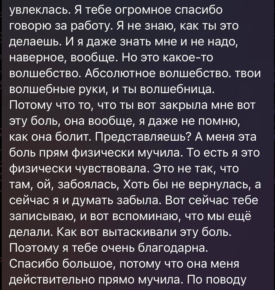 Вот отзыв мужчины после моего ретрита 14го марта (выложено дословно, с участником согласовано):