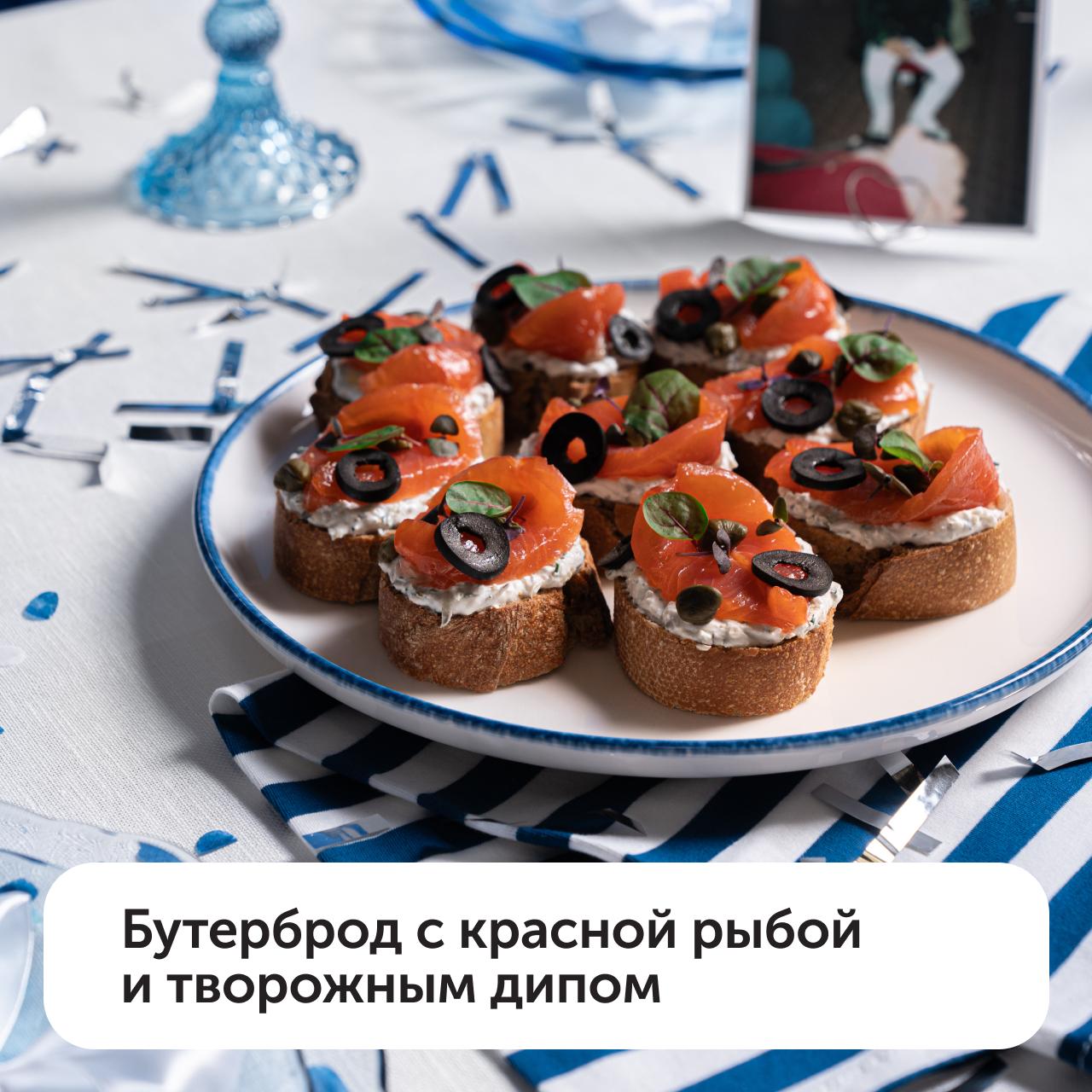 🔵 Бутерброд с красной рыбой и творожным дипом