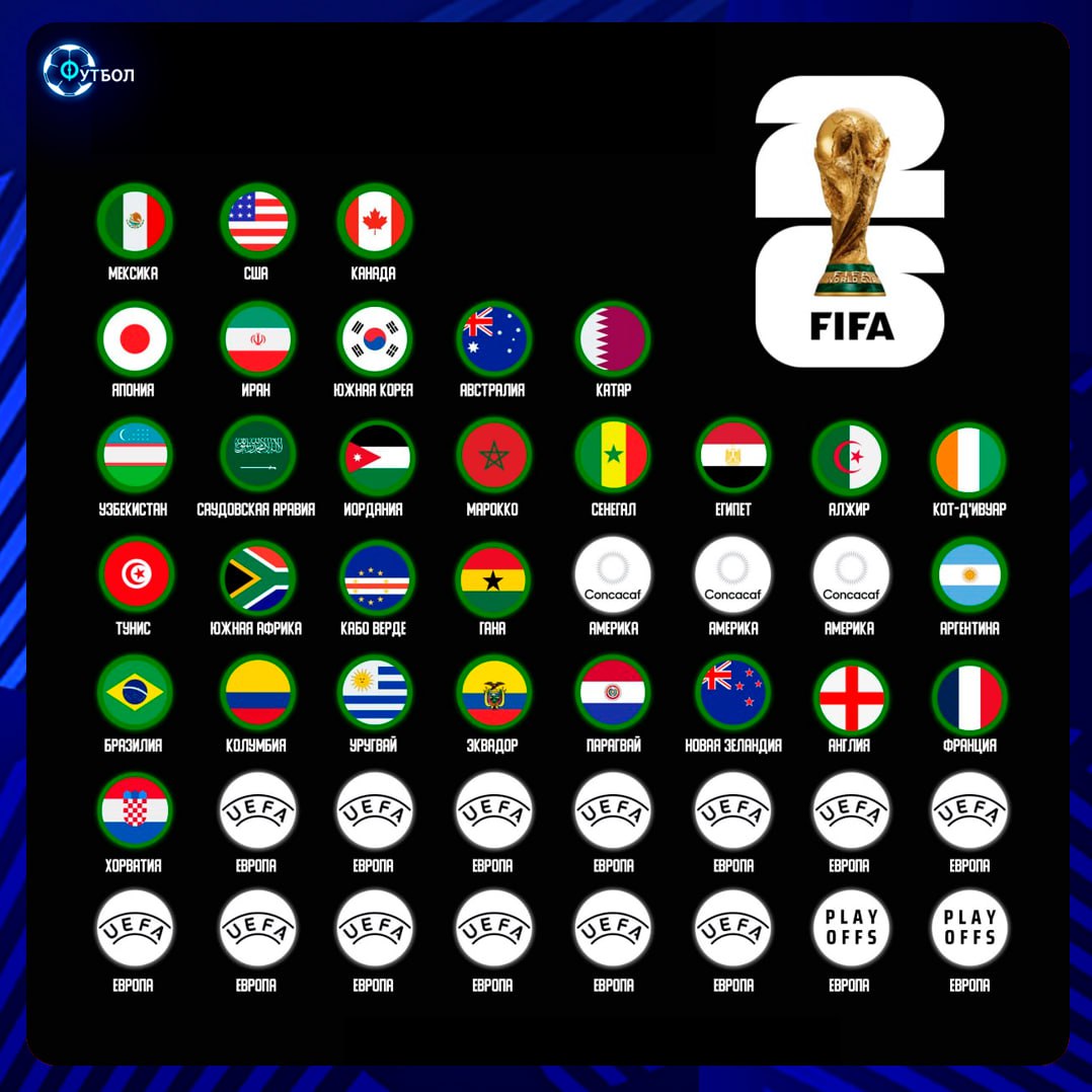 ✔️ 30 из 48 сборных уже квалифицировались на ЧМ-2026!