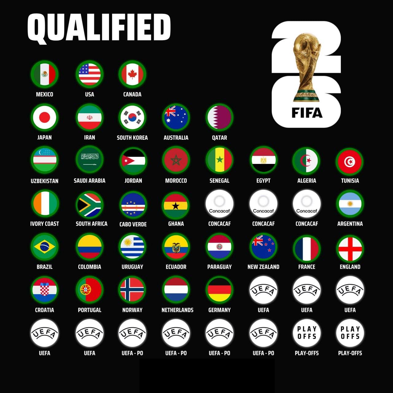 📌 Эти 16 команд будут сведены в четыре «пульки» и сыграют два одноматчевых раунда в формате плей-офф (полуфиналы и финал). Победители четырех «пулек» квалифицируются в финальную стадию чемпионата мира 2026 года.