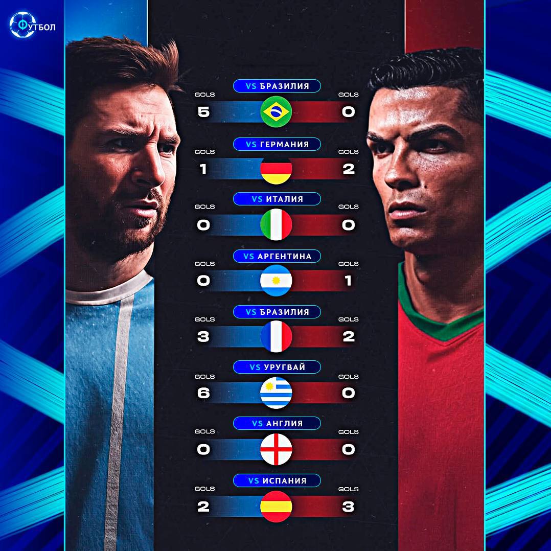 📊 Сравнение Месси и Роналду против сборных, которые выигрывали ЧМ:
