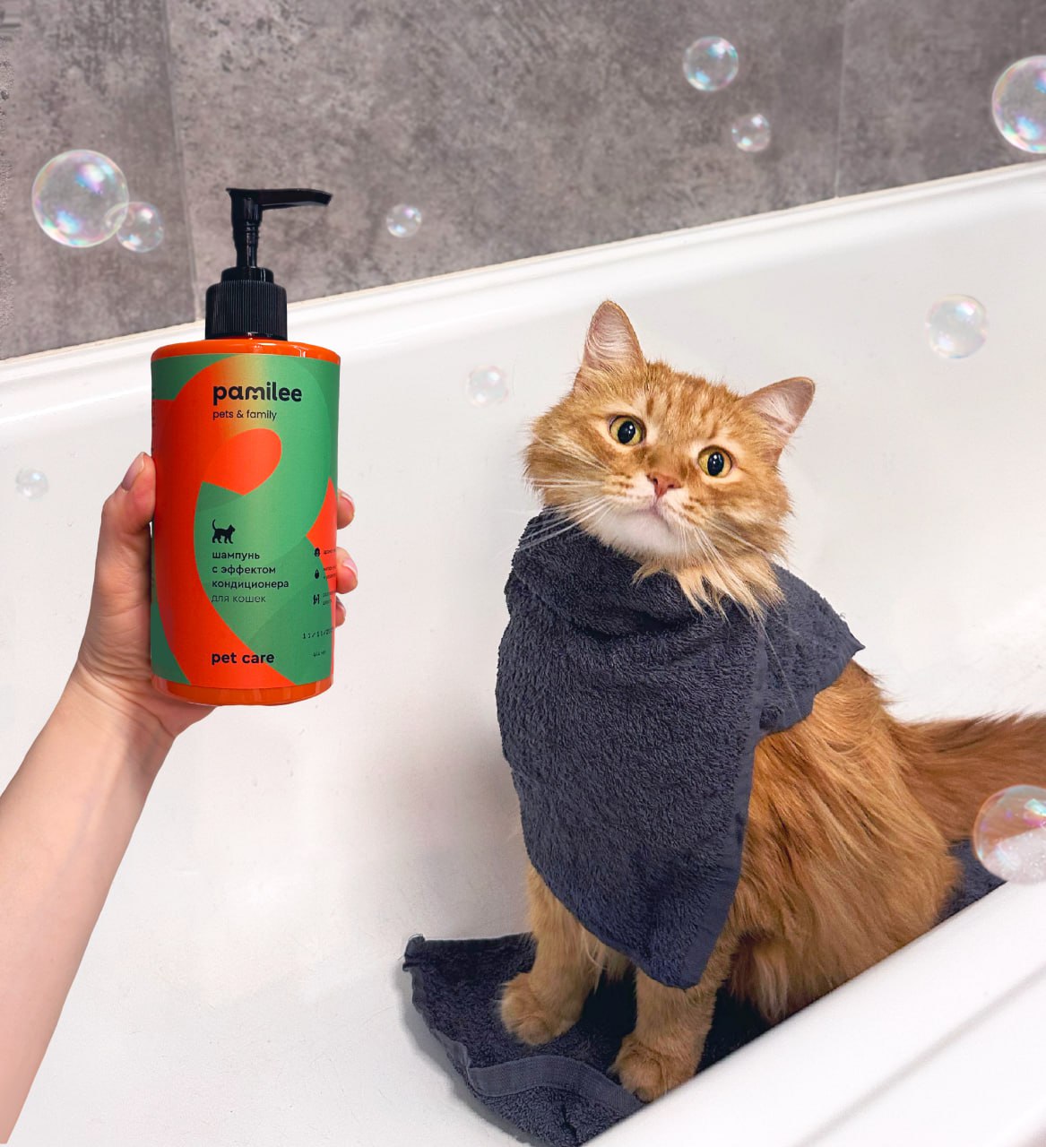 Он подходит и короткостриженным ребятам, и лысеньким, и даже мою гриву мохнатую отлично промывает. Даже после ремонтов, которые я делаю. А еще я потом пахну так притягательно и свежо, как мятная конфетка. Красотка моя даже забывает, что я только что из лотка пришел, и дает мне лапы ей на лицо поукладывать.