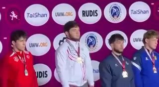 👀Украинский борец сошел с пьедестала во время гимна России