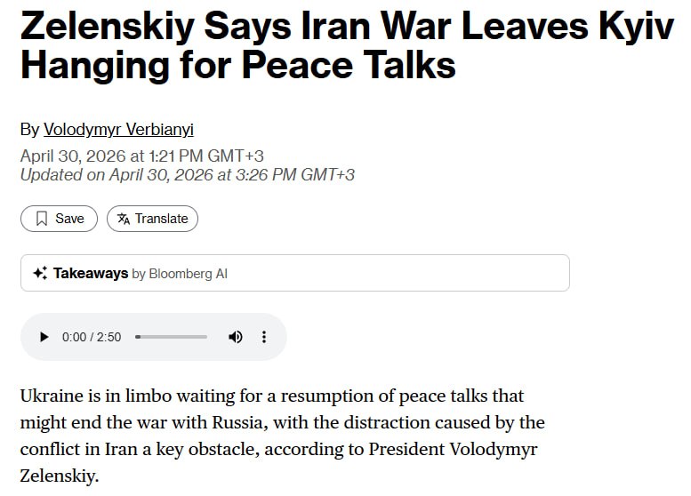 ▪️Война в Иране ставит Киев в невыгодное положение для мирных переговоров.