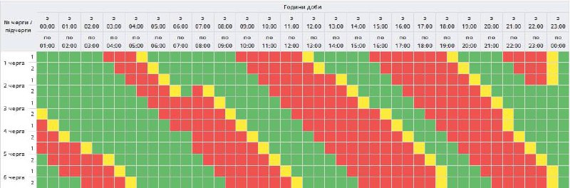 🔹Черга 5.2 – 00:30-03:30, 07:30-11:00, 13:30-18:00, 19:30-23:00