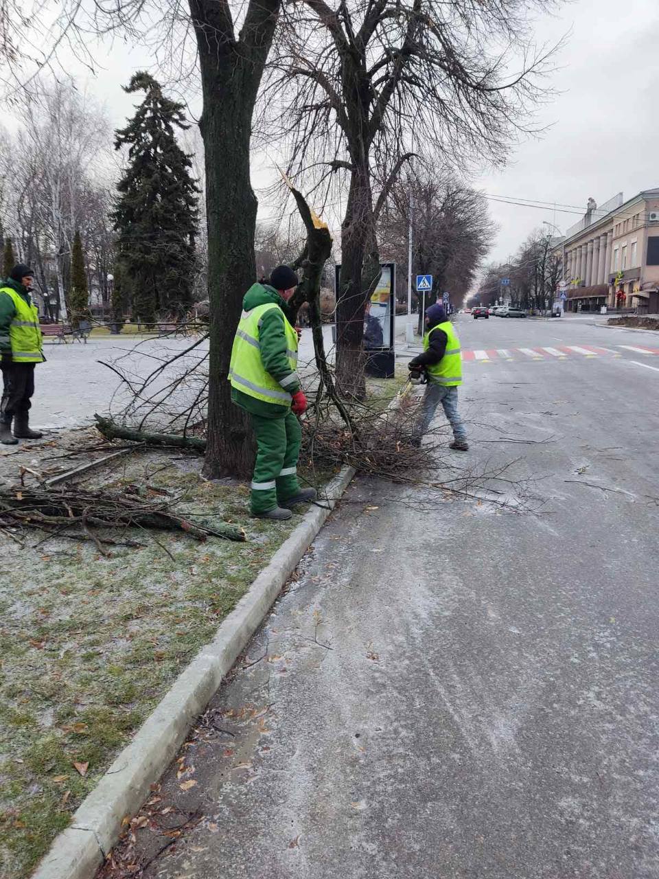 Негода повалила дерева та пошкодила чимало гілок у різних районах. Станом на сьогодні у місті працюють понад п’ять бригад комунальників. Вони прибирають гілля та впорядковують території.