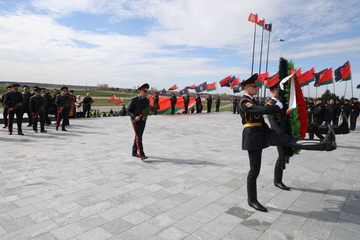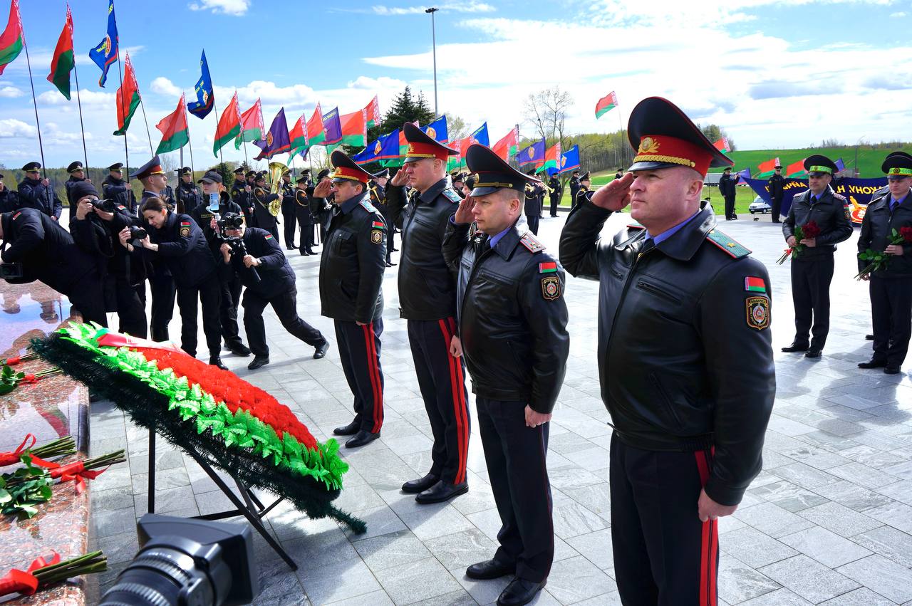 Также к знаковому мемориалу в Смолевичском районе прибыл первый заместитель Министра Юрий Назаренко, руководство центрального аппарата ведомства, столичной и областной милиции, ГУГАИ МВД и региональных подразделений.