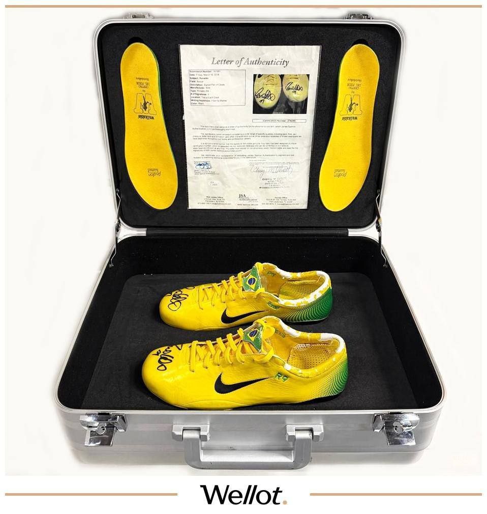 На аукционной площадке WELLOT 14 марта в Москве выставлены бутсы Nike Mercurial Vapor 3 R9, изготовленные персонально для Роналдо Назарио к чемпионату мира 2006 года — с его личным автографом.