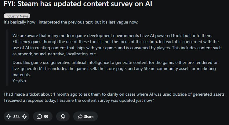- Hooded Horse, издатель Manor Lords и Against the Storm, теперь прям в контракте прописывает запрет на AI-ассеты