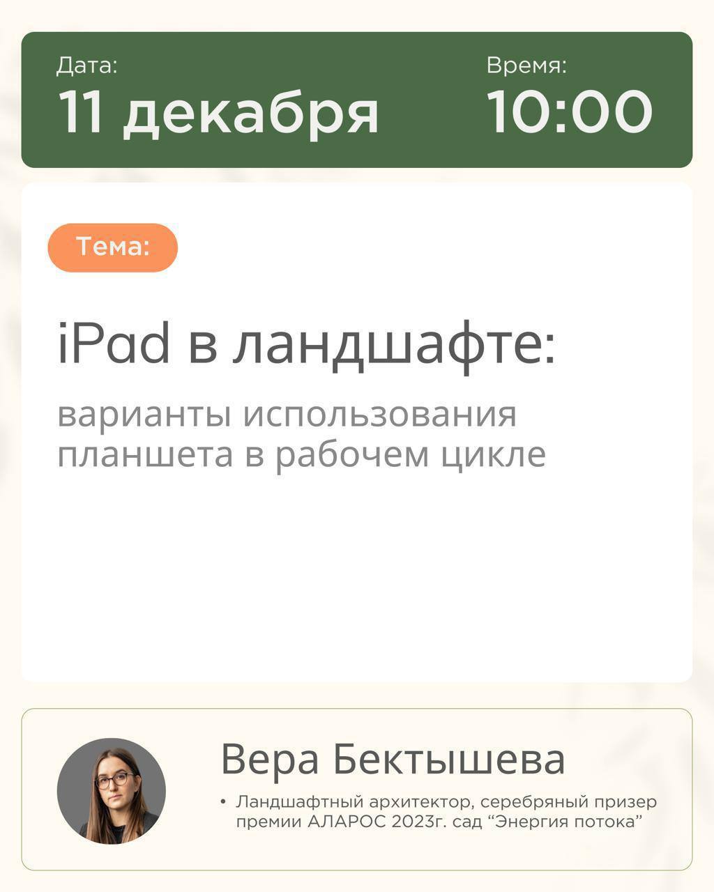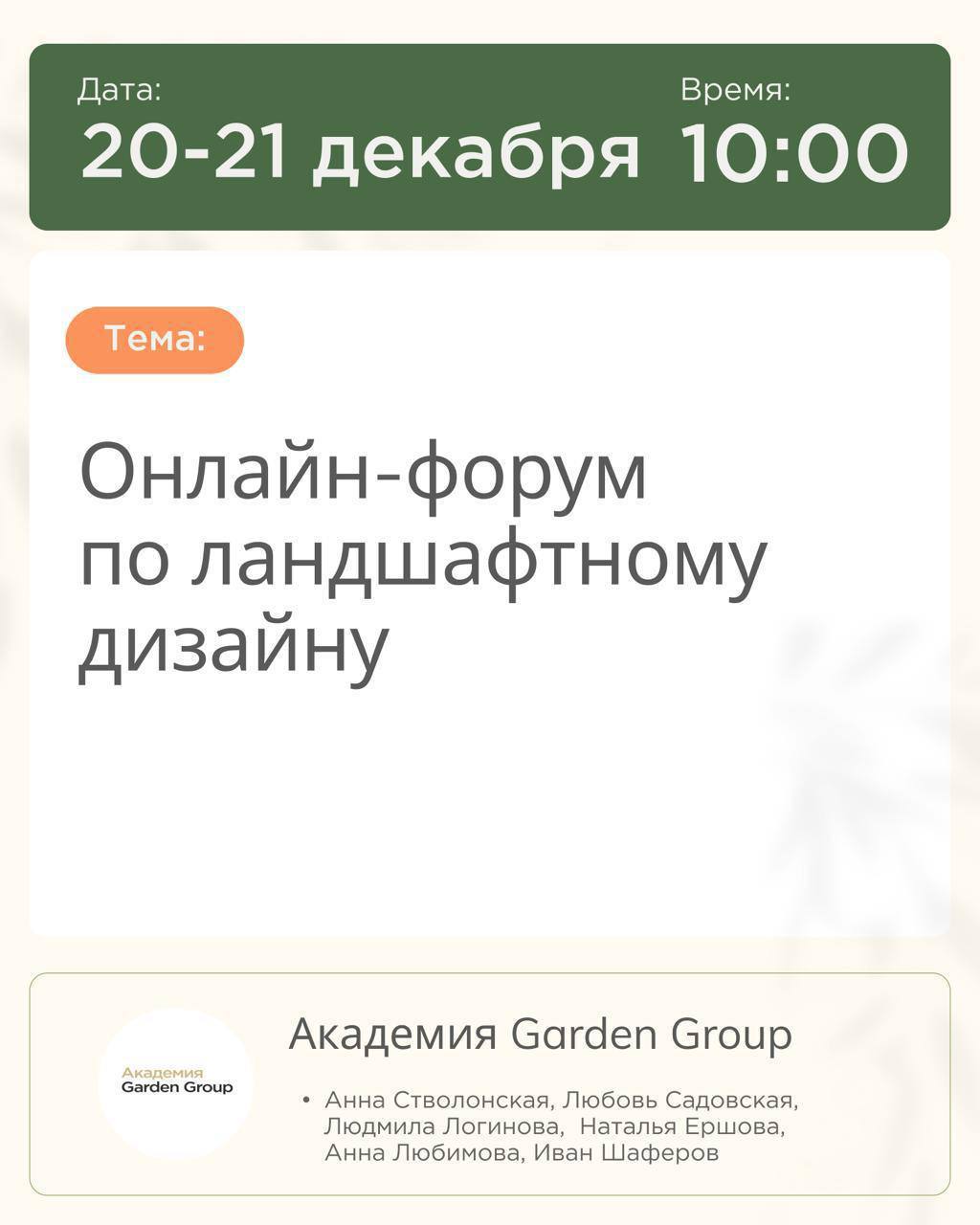 Татьяна Шаферова прямо сейчас разбирает главный миф: «Малоуходный сад = сад без ухода». Не бывает сада без ухода! Но есть огромная разница между садом, который требует постоянной борьбы, и садом, где уход стал естественным ритмом. На экране конкретные примеры: что делает сад трудозатратным и почему большинство садоводов работают не на тот результат. Не пропустите разбор мифов и настоящих принципов малоуходного сада. 👉🏻 Присоединяйтесь сейчас https://garden-group.online/lowmaintenance_garden_enter?utm_medium=chanel_gg&utm_source=telegram&utm_campaign=maluhod_sad&utm_content=2711 Garden Group 🌿 Ваш сад. Ваше вдохновение