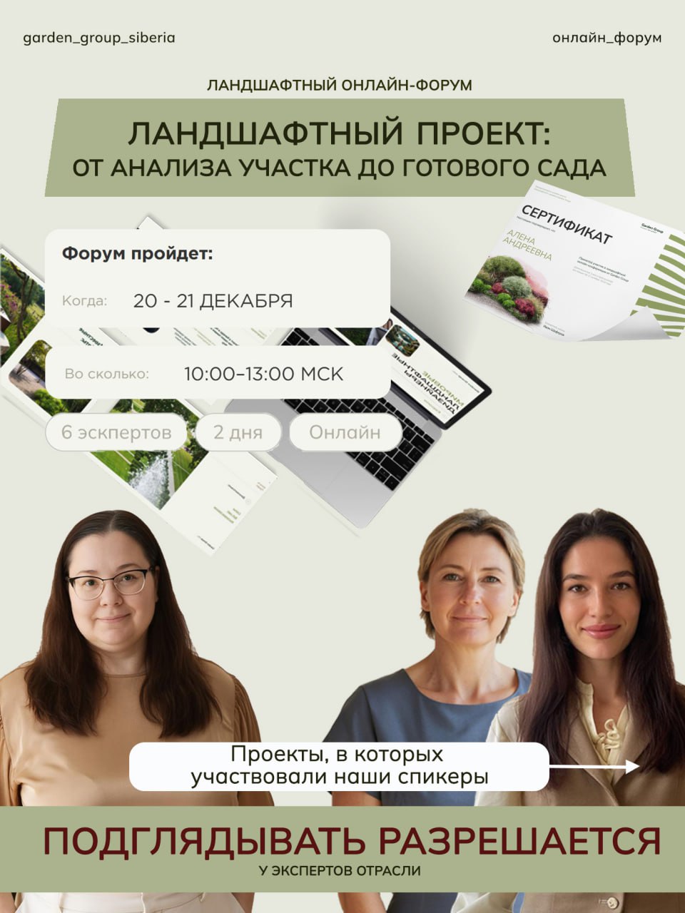 Не пропустите повтор вебинара «3D-визуализация и/или AI для ландшафтных проектов». В эфире мы раскроем, как создавать крутые визуализации без мощного компьютера и долгих часов рендера. ⏳ Старт: сегодня в 19:00 (МСК) 📍 Где: онлайн, ссылку на эфир отправим за 10 минут до начала После нашего вебинара вы будете смотреть на визуализацию совершенно иными глазами: увидите, как она экономит время на правках и помогает продавать дороже. Приготовьте блокнот для заметок — вам точно захочется зафиксировать несколько важных моментов! До встречи совсем скоро! Команда Garden Group 🌿