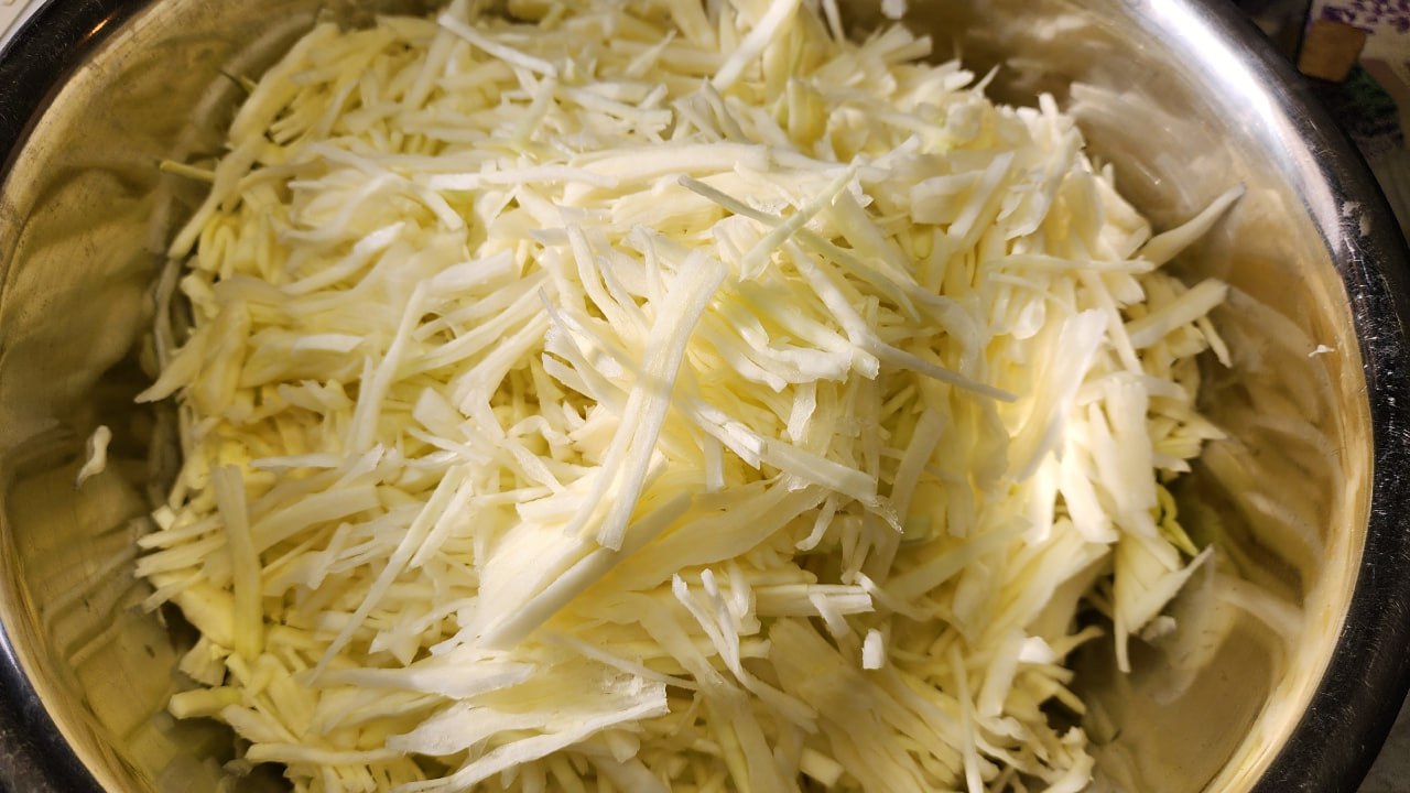 Капусту шинкую и отправляю к грибам.