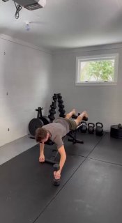 • Поднимаем гантель, лежа на скамье — укрепляем заднюю дельту и правим осанку.