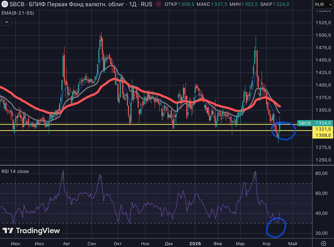 1. SBCB (конечно же мой любимый фонд на евробонды, см.второй график - там супер красивая отбивка с диапазона и также RSI(D) работает)