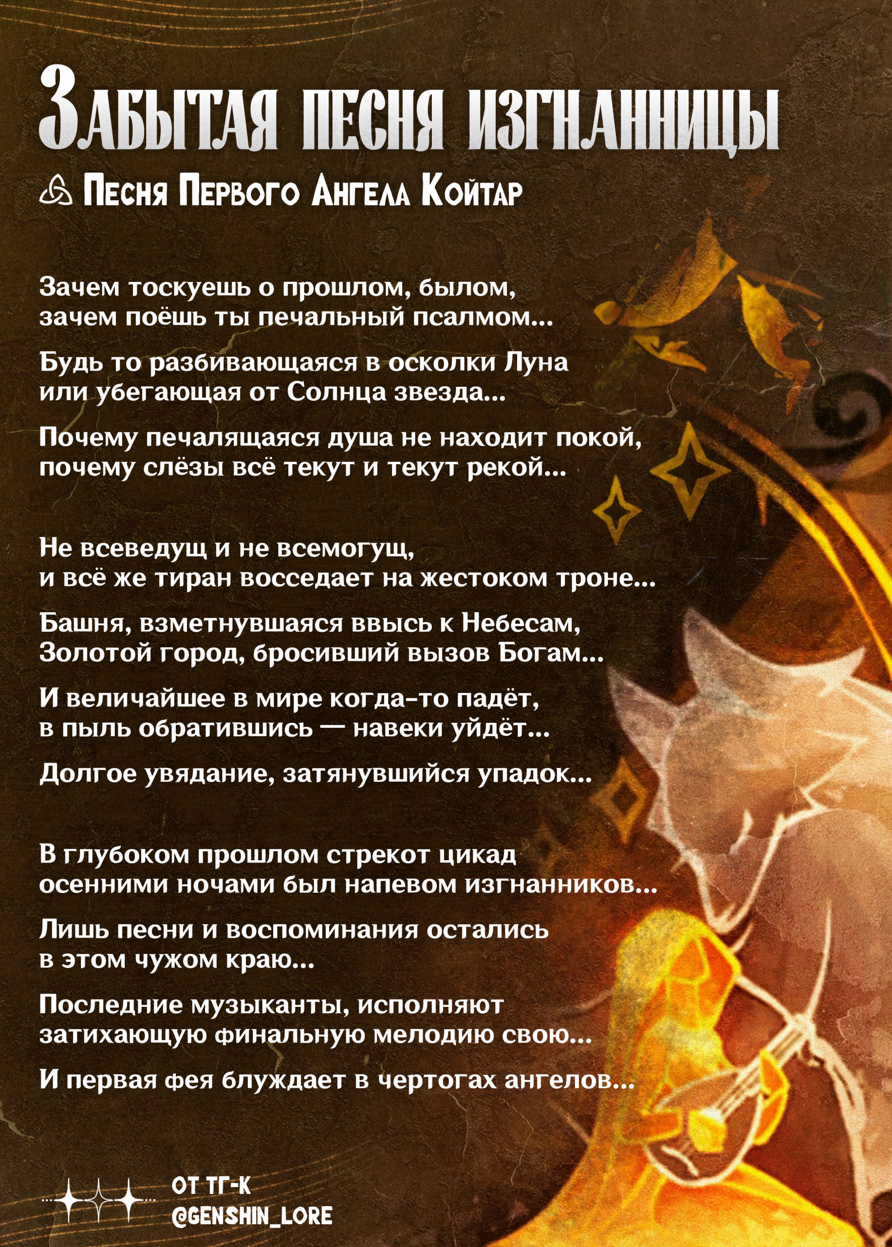 😎😍 Забытая песня изгнанницы, исполняемая Койтар по ходу выполнения квеста (не перевод муз. темы, играющей в локации)